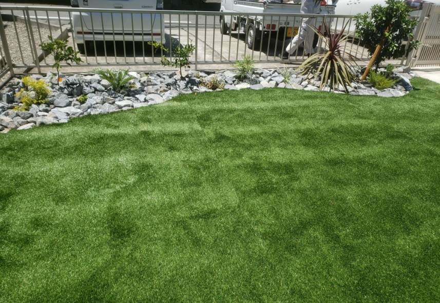 防草を兼ねて、人工芝を施工しました。