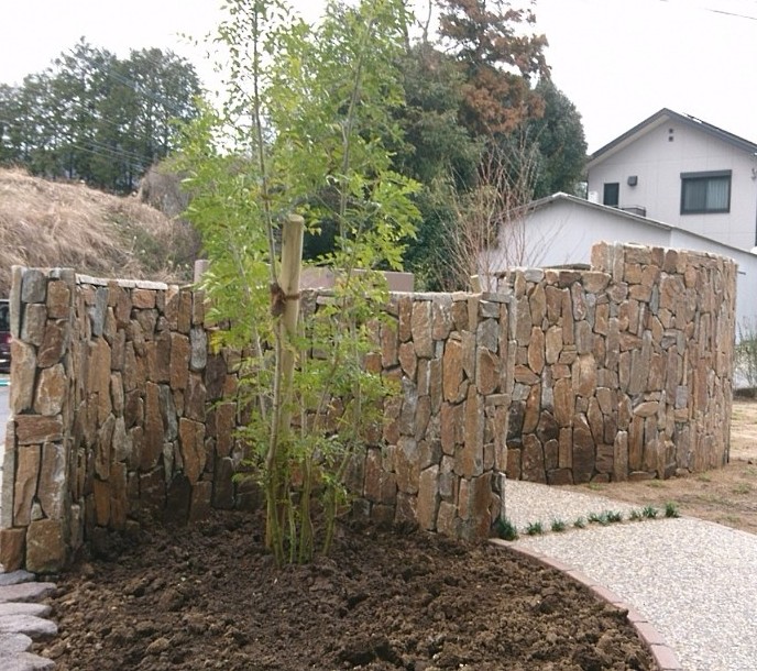玄関前にある程度の高さの石積をご希望されたI様。