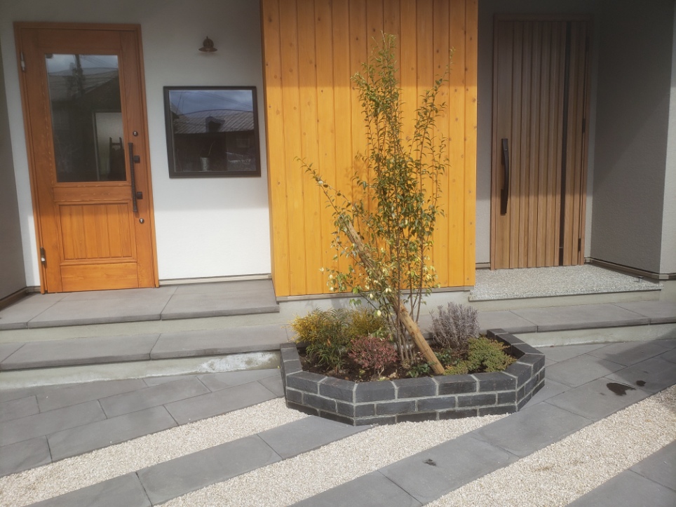 ご自身で樹木を厳選し植栽され、より素敵な玄関前になる事でしょう。