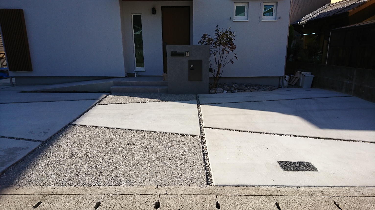 シンプルですが、とても使い勝手の良いモダンな外構に仕上がりました。