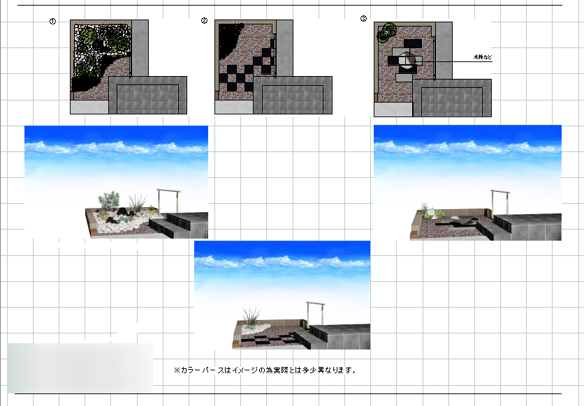 お好みですが、割栗石部分に下草を植えると、また雰囲気が変わってきます。