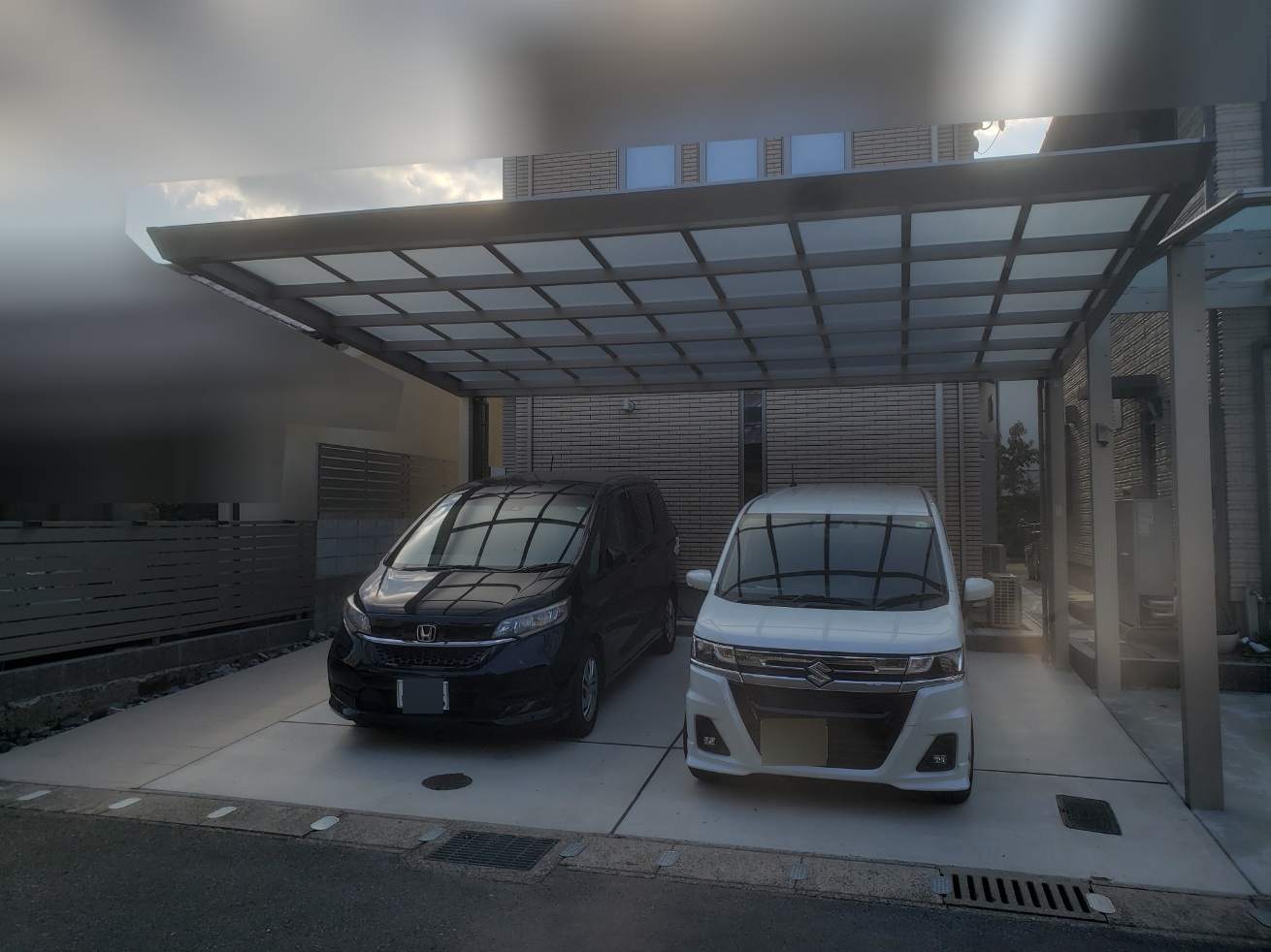 お父様邸はカーポート(写真奥)は「YKK AP:エフルージュFIRST600タイプ2台用」