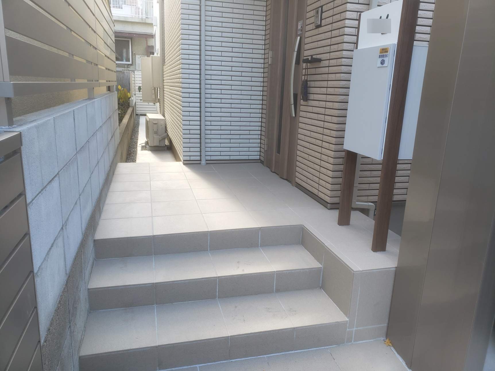 門扉右横にはタイルテラスを施工。
